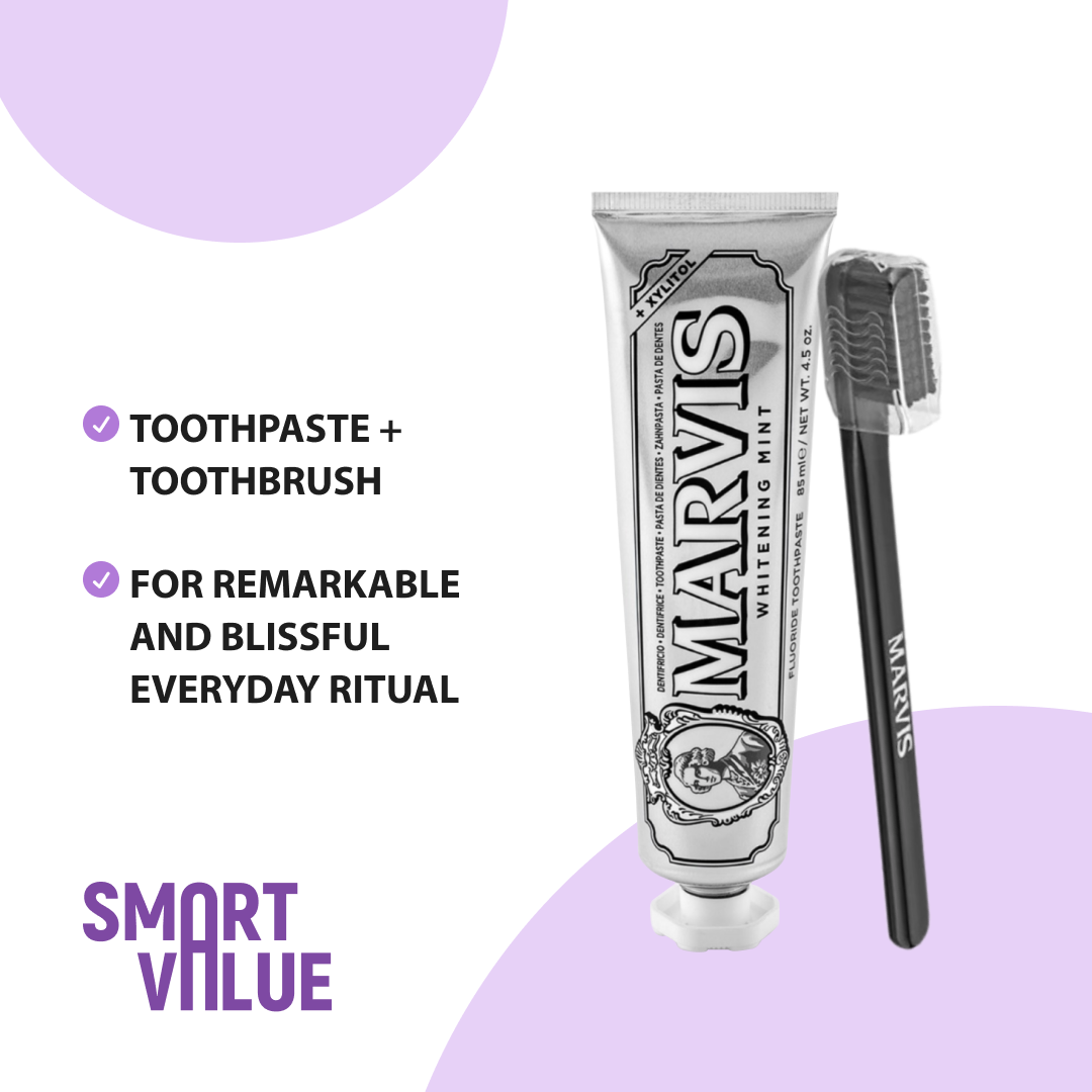 Elevate your oral care routine with the Marvis Whitening Mint toothpaste and Marvis Toothbrush set, specifically designed for smokers.